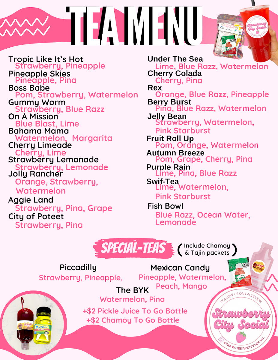 The essence of Strawberry City Social lies in its unique offerings. With a diverse menu boasting enticing options, you'll discover everything from energizing teas to refreshing lemonades. Their signature drinks such as the Mexican Candy Tea and Strawberry Colada are local favorites that consistently receive rave reviews. When you take a sip of the Mexican Candy Tea, the blend of sweet and spicy flavors dances on your palate, while the Strawberry Colada serves up a tropical escape in a cup—perfect for those warm afternoons.
